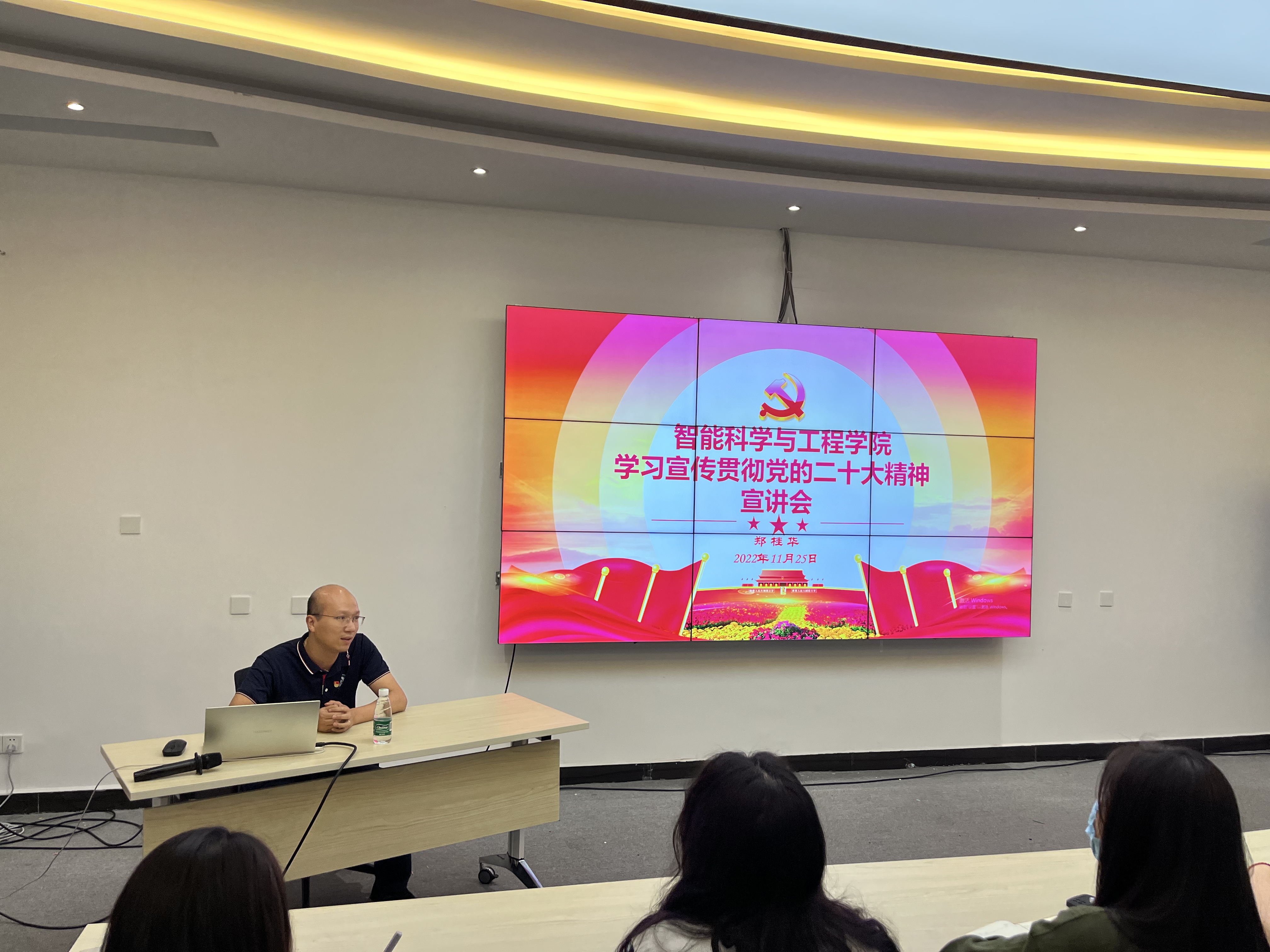 2022年11月25日上午,成人视频 在实A305会议室举办学习宣传贯彻党的二十大精神专题报告会,学院党总支郑桂华副书记主讲,学院学生党支部全体党员及部分学生干部聆听了报告。