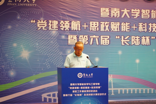 仪式上,屈挺代表珠海校区对学院“党建领航+思政赋能+科技竞赛”思政工作精品项目暨第六届“长陆杯”科技创新大赛的成功举办表示热烈祝贺,他指出,此次思政工作精品项目成功获批,切实发挥了学院基层党组织的战斗堡垒作用,使党员发挥先锋模范带头作用有了新阵地、新载体,扩大学生科技竞赛的影响力和覆盖面,吸引更多学生融入到团结奋进的学风氛围中来。希望学院再接再励,以“长陆杯”科技创新大赛为契机,通过推动校区和学院的专家教授深入企业,促进学校科技成果转化落地,争取形成可示范引领、可持续推广的学术科技竞赛模式,推动党建与业务双融双促。