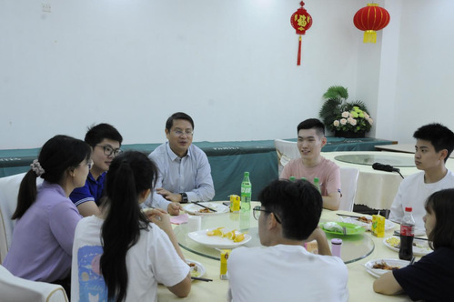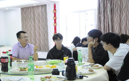 在食堂的午餐桌上,没有了平日工作中的严肃,更多的是温暖融洽的氛围。周玉宇、陈韶鹏亲切地与每位同学进行交谈,询问大家的生活情况、在学习工作中的感受以及遇到的困难。这种面对面的交流,就像一座无形的桥梁,拉近了师生之间的距离,让同学们感受到来自学院的关怀与重视。
