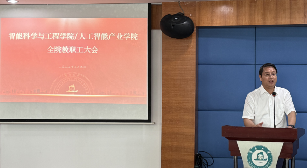 周玉宇首先带领全院教职工开展中央八项规定精神学习教育,随后对学院党建、统战、干部、宣传、保密、安全、人才培养、师德师风建设、工会、校友等工作进行总结并对新学期工作进行部署,指出学院党总支坚持深入学习贯彻习近平新时代中国特色社会主义思想和党的二十届三中全会精神,担起政治责任、廉政责任和安全责任,不断完善组织建设,推动各项事业发展取得新进展。周玉宇从党建引领角度对本科教育教学审核评估迎评工作提出具体要求。他强调全体党员教师应充分发挥先锋模范作用,以高度的责任感和使命感推动教育教学改革,同时以优良教风带动学风,营造良好迎评氛围,确保高质量完成各项准备工作,顺利迎接本科教育教学审核评估。