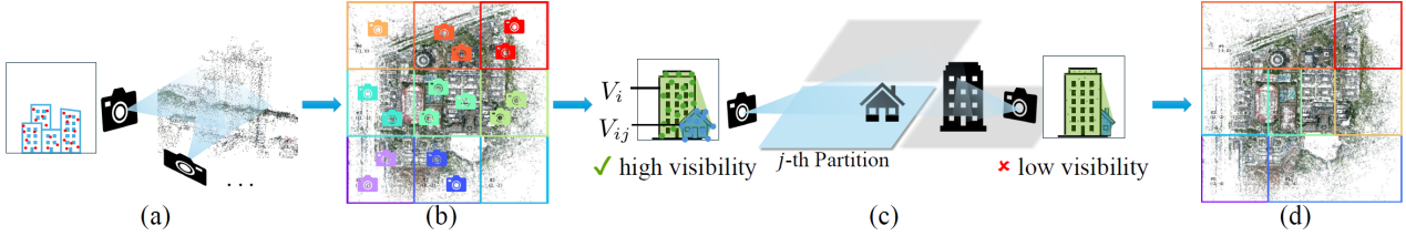通过独创的可见性评估算法,精准筛选对分区重建具有贡献的影像数据,大幅削减训练阶段的数据冗余量,重建效率大幅提升。